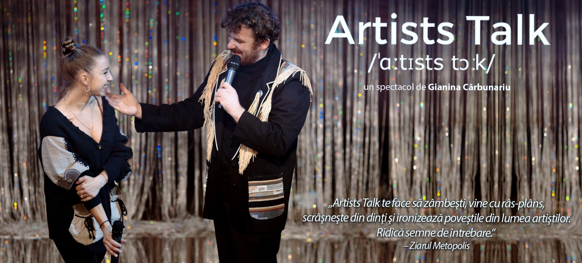 Un spectacol inedit de teatru cu implicare socială, care vorbeşte despre responsabilitatea artistului, Artists Talk a fost nominalizat la premiile UNITER pentru Cel mai bun spectacol de teatru contemporan, în 2016, iar anul trecut a reprezentat România la Festivalul de Teatru de la Liège, şi a intrat în selecţia oficială a Festivalului Naţional de Teatru.