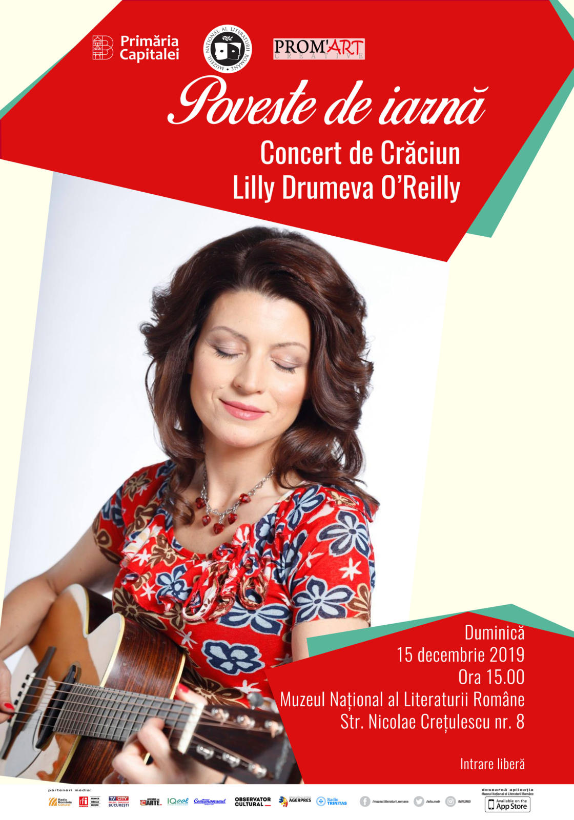 Muzeul Naţional al Literaturii Române vă invită la un concert de Crăciun numit „Poveste de iarnă”, al artistei bulgare Lilly Drumeva O’Reilly, duminică, 15 decembrie 2019, ora 15.00, în Sala Perpessicius a sediului din Str. Nicolae Creţulescu nr. 8.