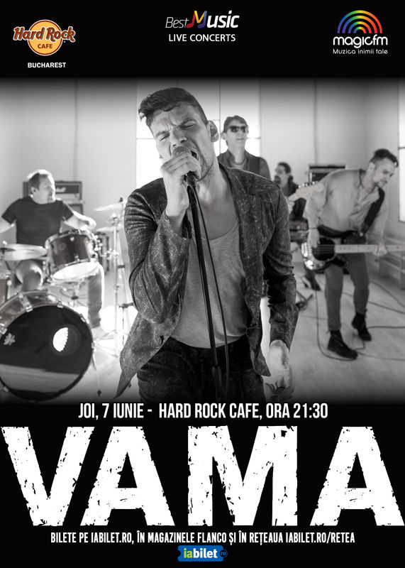 Joi, 7 iunie, de la ora 21:30, BestMusic Live Concerts te invită la Hard Rock Cafe să trăieşti o nouă experienţă alături de trupa ta preferată, Vama! Mai ales că în faţa scenei nu vor fi mese, dansul este garantat!