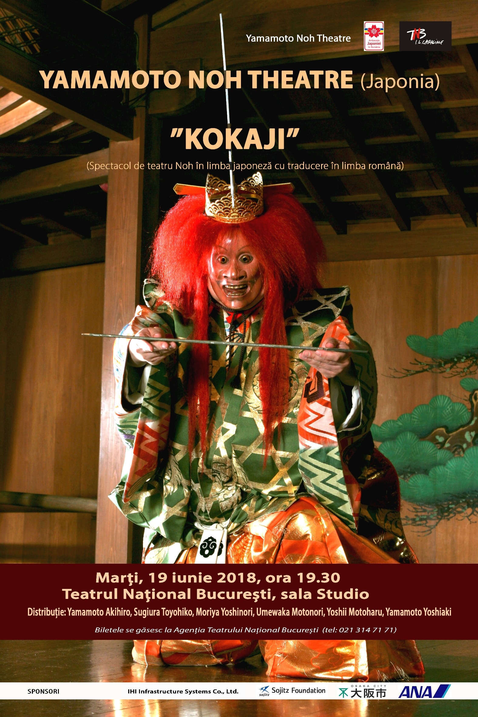Marţi, 19 iunie 2018, ora 19.30, sunteţi aşteptaţi la Sala Studio a Teatrului Naţional din Bucureşti, la un spectacol de teatru care se poate vedea mai rar în afara graniţelor  Japoniei. Este vorba despre KOKAJI/FIERARUL, un spectacol de teatru NOH (drama clasică japoneză ale cărei origini numără peste şapte secole de existenţă) în interpretarea companiei Yamamoto Noh Theatre. KOKAJI este o piesă dinamică în două acte din categoria Kiri Noh (piese cu personaje şi animale supranaturale), autorul fiind necunoscut.
