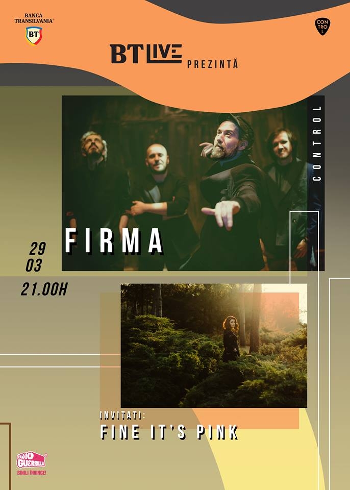 Joi 29 martie, FiRMA – una dintre trupele icon ale scenei alternative româneşti – revine la BT Live să ofere publicului din Control o experienţă live în spiritul rock`n`roll şi să predea ştafeta tinerei trupe ieşene Fine It`s Pink – un proiect artistic audio-vizual de perspectivă.