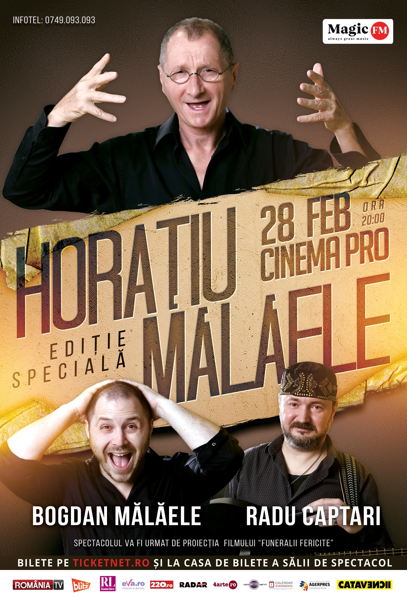 Actorul Horaţiu Mălăele, pe care l-aţi putut vedea de curând interpretând rolul lui Ilie Moromete în ”Moromeţii 2”, ecranizarea de succes a operei lui Marin Preda, se întâlneşte cu publicul din Capitală joi, 28 februarie, de la ora 20:00, la Cinema PRO, pentru o nouă reprezentaţie a spectacolului de succes ”Ediţie specială”.