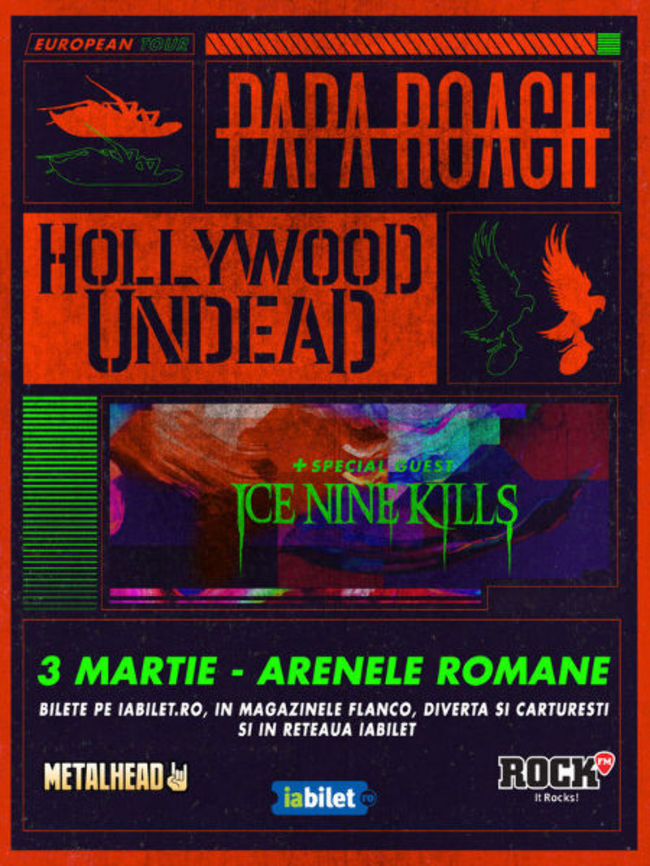 Papa Roach şi Hollywood Undead cântă pe 3 martie la Bucureşti la Arenele Romane în cort încălzit. În deschidere vor cânta Ice Nine Kills.