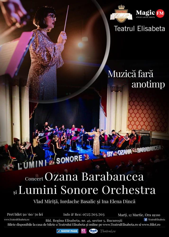 Marti, 12 Martie, “Muzica fara anotimp”. Spectacol muzical Ozana Barabancea si Lumini Sonore Orchestra.
