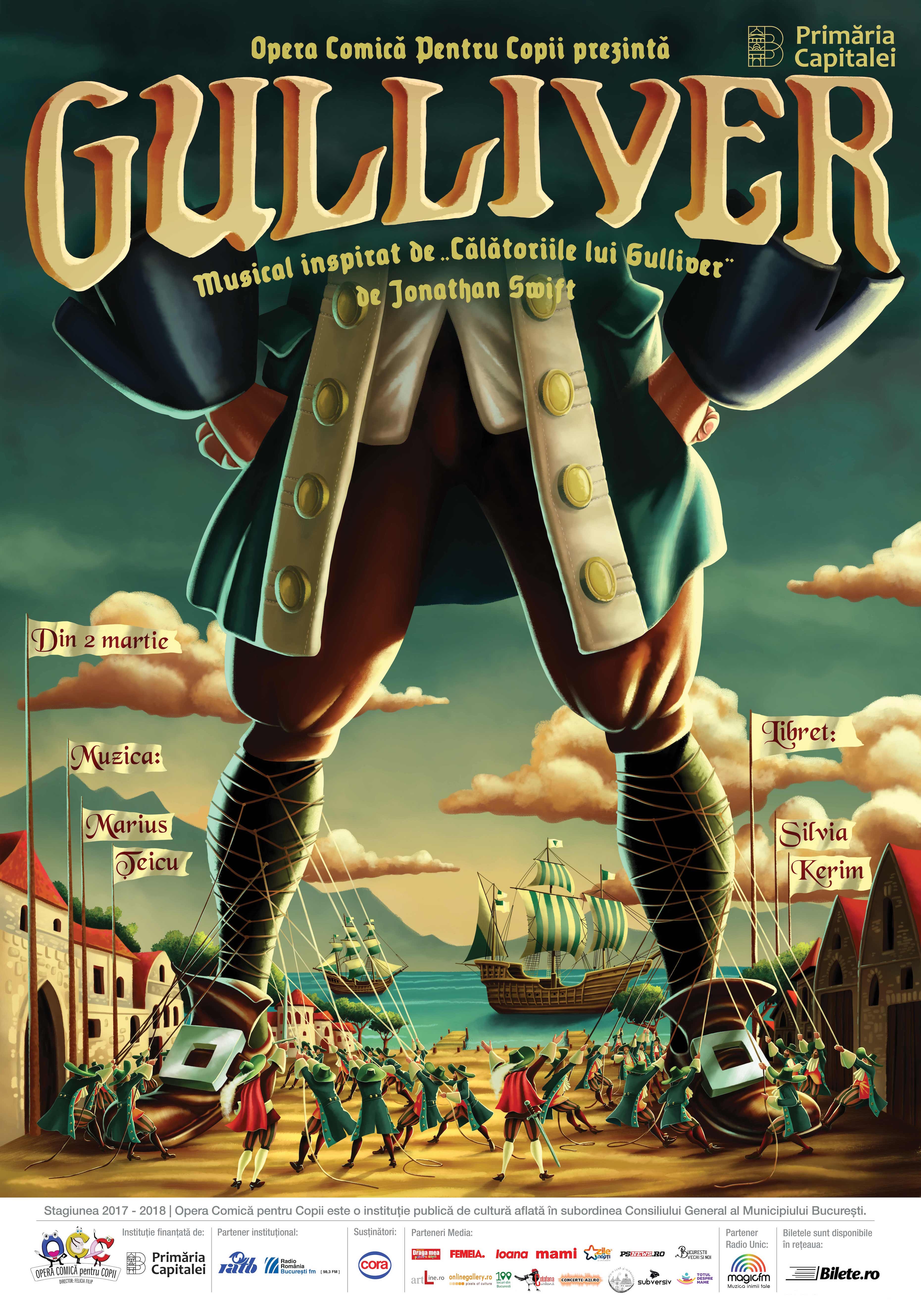 La începutul lunii martie, Primăria Capitalei, prin Opera Comică pentru Copii, prezintă o nouă premieră: musicalul “Gulliver”, pe muzica lui Marius Ţeicu şi libretul Silviei Kerim.