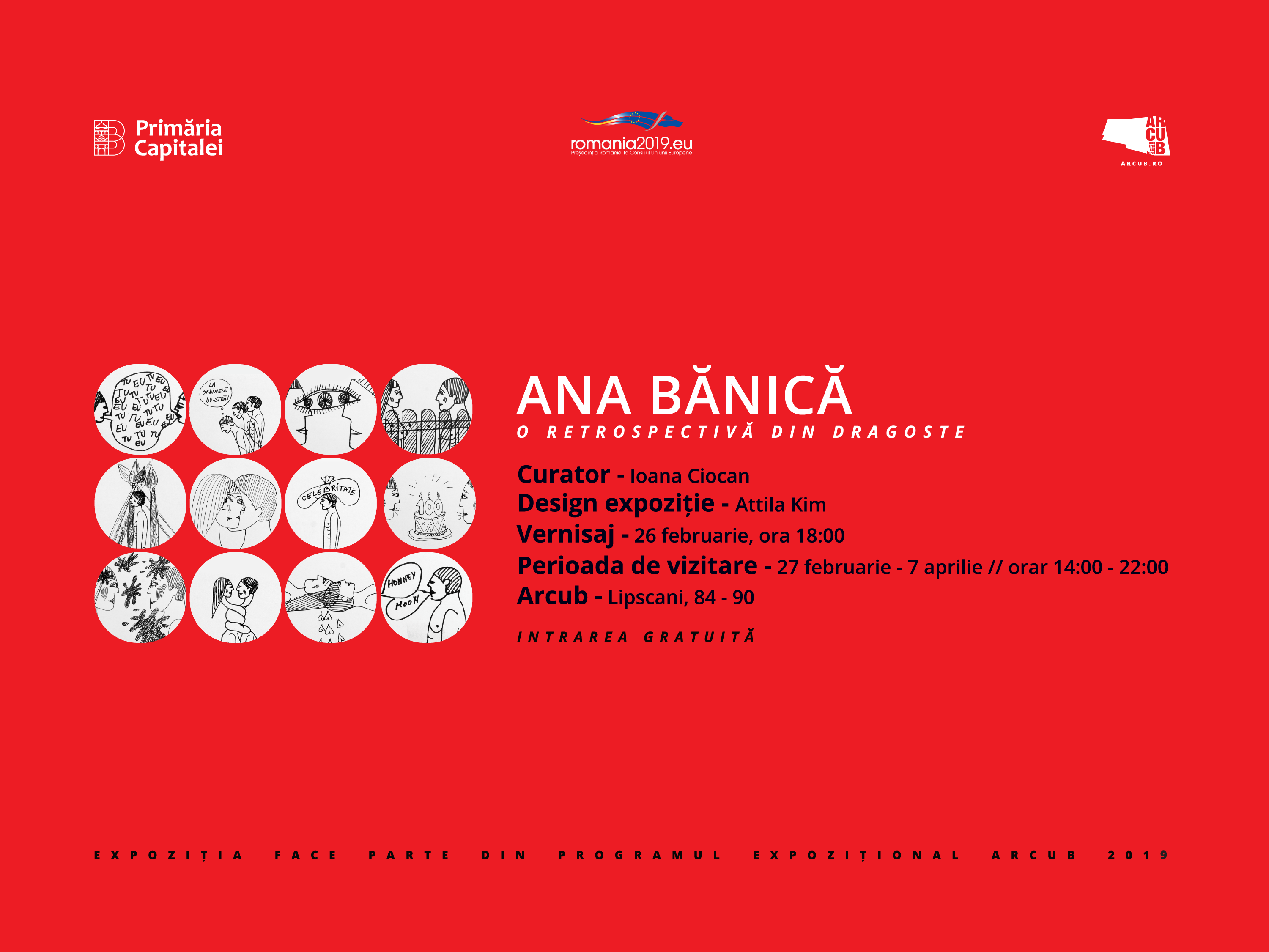 „Ana Bănică reuşeşte să ne surprindă de fiecare dată, să ne scoată din zona de confort, deşi subiectele pe care le abordează de obicei sunt cât de poate de confortabile. Ca de exemplu: dragostea. Dacă te simţi conectat la subiect, înseamnă că vei rezona, în noua expoziţie, la «Cele 7 cercuri ale iubirii» care te îmbracă precum un «Cocon» sau vei purta o «Conversaţie» despre «Casnic Love» sau «Cosmin Love», îţi vei aminti când ai spus «DA» sau «Nu pot fără tine», când vedeai relaţia ca pe un «Acoperiş» sau ca pe o carte deschisă. Expoziţia de la ARCUB este o expoziţie despre Iubire. Dar nu numai. Bucuria, tresăltarea, dificultăţile, agonia, urmările sunt frânturi de stări şi emoţii care definesc cine suntem. Explorat prin stilul de acum binecunoscut al artistei, subiectul devine dintr-o dată o definiţie extrem de realistă, revelată printr-o serie de desene construite pe metaforă. Ana Bănică ia în considerare fiecare poveste în parte şi îi dă forma propriului punct de vedere. Coincide cu al tău?” declară Ioana Ciocan, curatorul Programului Expoziţional ARCUB 2019.