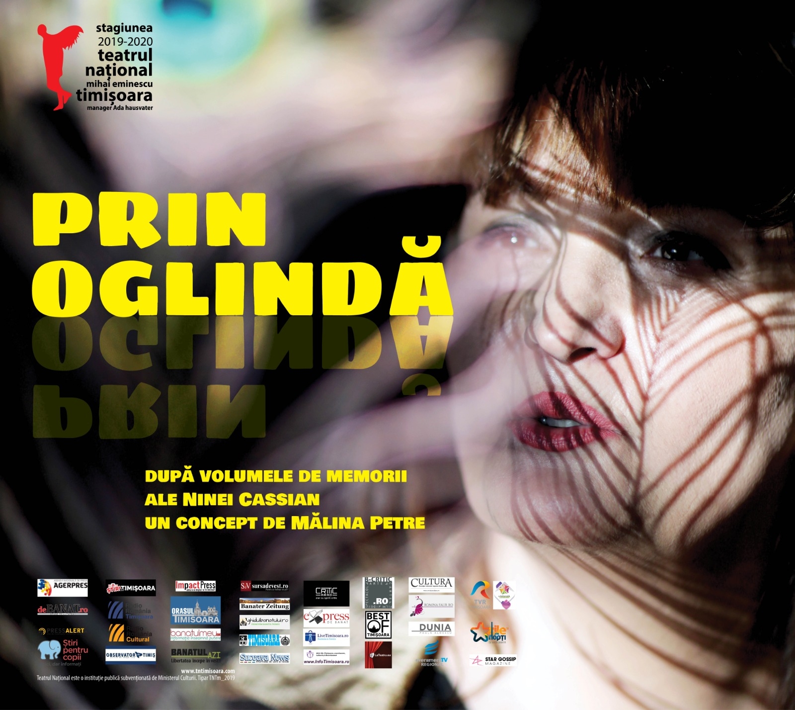 Prin oglindă, spectacol programat sâmbătă, 21 decembrie, de la ora 19,00 aduce pe scena de la Studio „Uţu Strugari” un one-woman show interpretat de Mălina Petre. Actriţa creează spectacolul povestind  memoriile Ninei Cassian, figură remarcabilă a literaturii române.