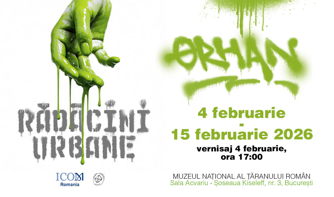 Muzeul Național al Țăranului Român vă invită miercuri, 4 februarie 2026, ora 17:00, la Sala Acvariu, la vernisajul expoziției Rădăcini Urbane, semnată de artistul ORHAN, cunoscut pentru practica sa artistică din zona street art-ului.