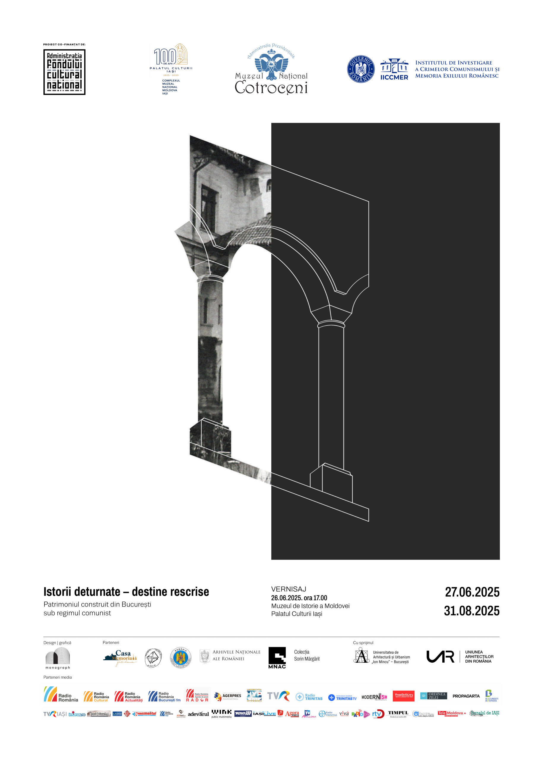Muzeul de Istorie a Moldovei din cadrul Complexului Muzeal Național „Moldova” Iași, în parteneriat cu Muzeul Național Cotroceni și Institutul de Investigare a Crimelor Comunismului și Memoria Exilului Românesc (IICCMER), invită publicul să viziteze expoziția „Istorii deturnate – destine rescrise. Patrimoniul construit din București sub regimul comunist”, itinerată la Iași în perioada 26 iunie – 31 august 2025.
