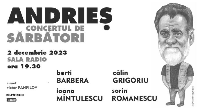 Alexandru Andrieș ne încântă cu muzica sa de peste 50 de ani, lăsând peste 80 de materiale discografice și susținând peste 3000 de concerte. Muzician, arhitect, poet, artist plastic, simbol al unei generații și mentor al următoarelor generații, Alexandru Andrieș este un artist unic. Întâlnirile cu el devin evenimente de neuitat, vă puteți convinge de acest lucru din nou în 2 decembrie 2023, la Sala Radio – nu ratați această experiență specială, un cadou muzical oferit de Alexandru Andrieș și prietenii lui chiar înainte de Sărbătorile de iarnă.
