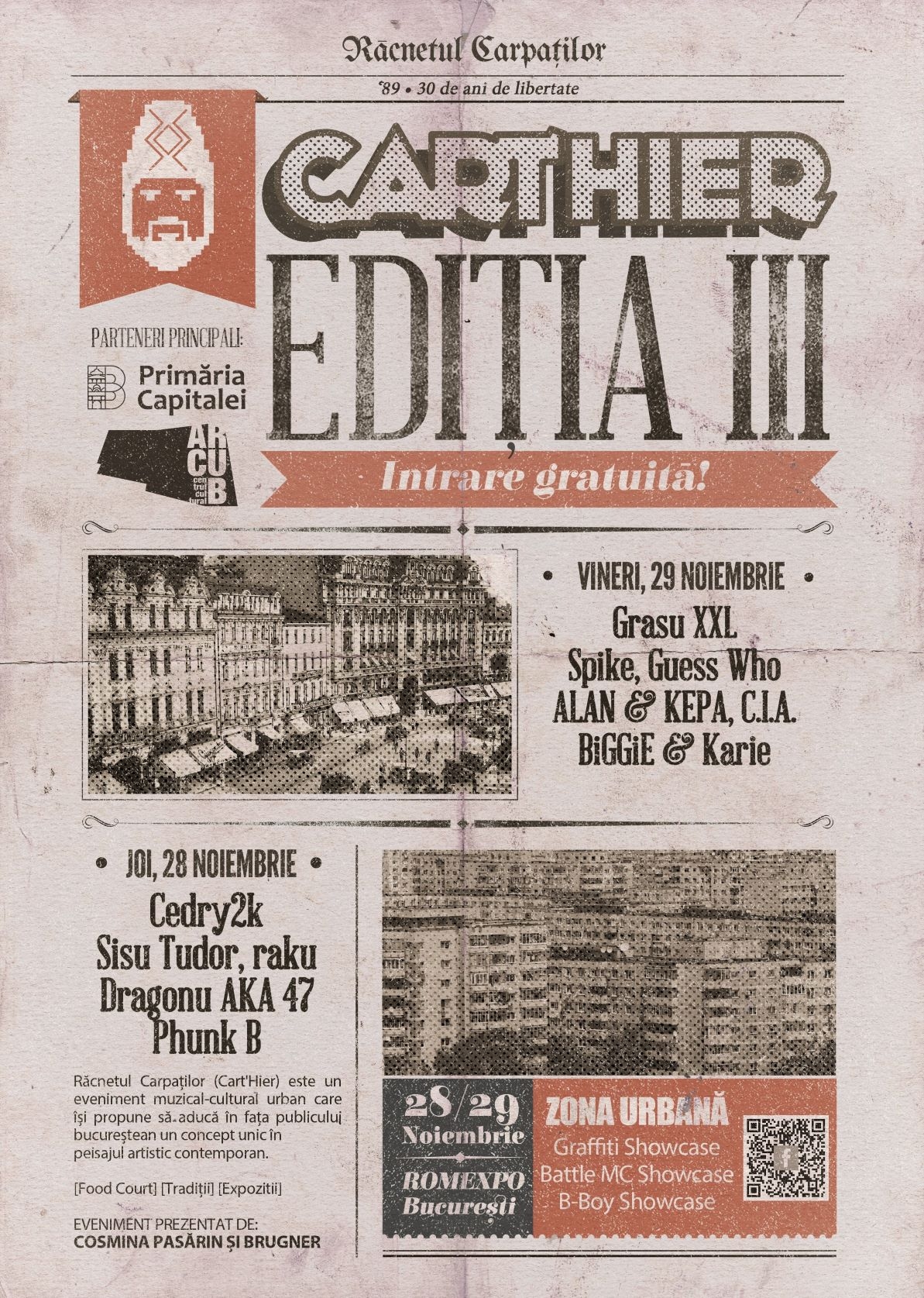 Combinând cultura underground cu tradiţiile româneşti, ediţia din acest an a „Răcnetului Carpaţilor” poartă subtitlul „Cart’hier 2019” şi prezintă publicului bucureştean o paralelă între oraşul de ieri şi de astăzi, prin concerte hip-hop, meşteşuguri populare, sporturi urbane şi battles de ritmuri hip-hop. Totodată, „Răcnetul Carpaţilor” marchează, în acest an, 30 de ani de la Revoluţia din 1989 printr-o expoziţie de fotografie şi o demonstraţie de graffiti cu tema „’89. 30 de ani de libertate”.