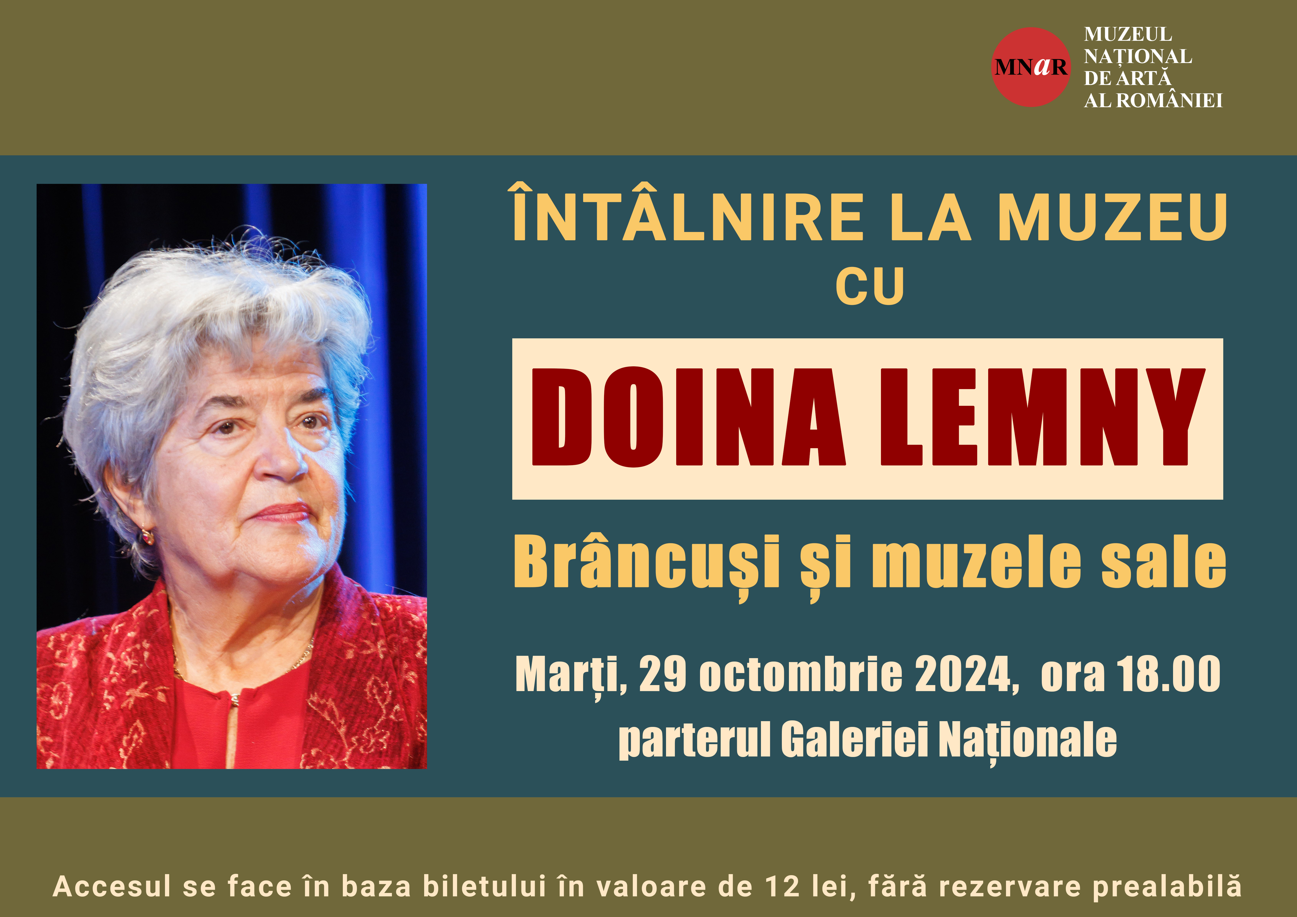 MNAR vă invită marți 29 octombrie 2024, de la ora 18.00 la „Întâlnire la muzeu” cu Doina Lemny, care va prezenta conferința „Brâncuși și muzele sale”.