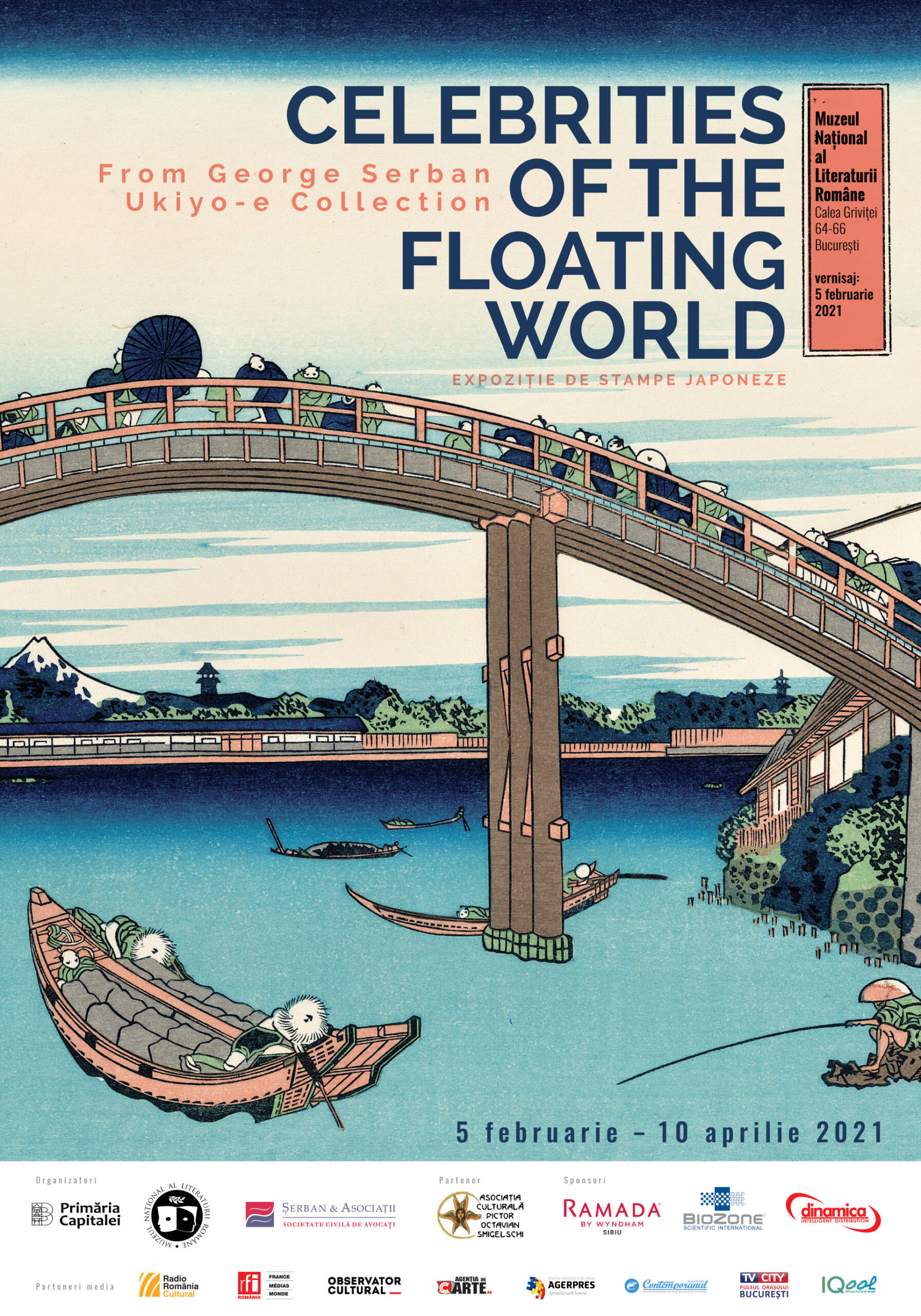 Muzeul Național al Literaturii Române și Asociația „Șerban și Asociații”, Societate civilă de avocați, în parteneriat cu Asociația culturală „Pictor Octavian Smigelschi”, organizează, în perioada 5 februarie – 10 aprilie 2021, expoziția-eveniment Celebrități din Lumea Plutitoare. Stampele japoneze, care vor fi expuse în cele trei săli de la parterul sediului MNLR din Calea Griviței 64-66, fac parte din colecția privată Ukiyo-e George Șerban.