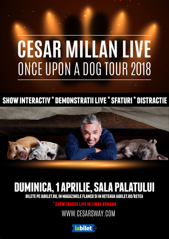 Cu o experienţă de peste 25 de ani, renumitul expert în comportamentul şi psihologia canină, Cesar Millan, va reveni la Bucureşti în cadrul unui spectacol cu adevărat hipnotizant după showul sold out din 2017. De-a lungul carierei sale a primit numeorase premii iar seria “Dog Whisperer with Cesar Millan” a fost nominalizată de trei ori la Premiile Emmy. Show-ul a fost produs până în 2012 şi a fost difuzat în peste 80 de ţări din lume. De asemenea, cărţile lui Millan sunt valabile în 14 ţări iar până acum au fost vândute în peste 2 milioane de copii.