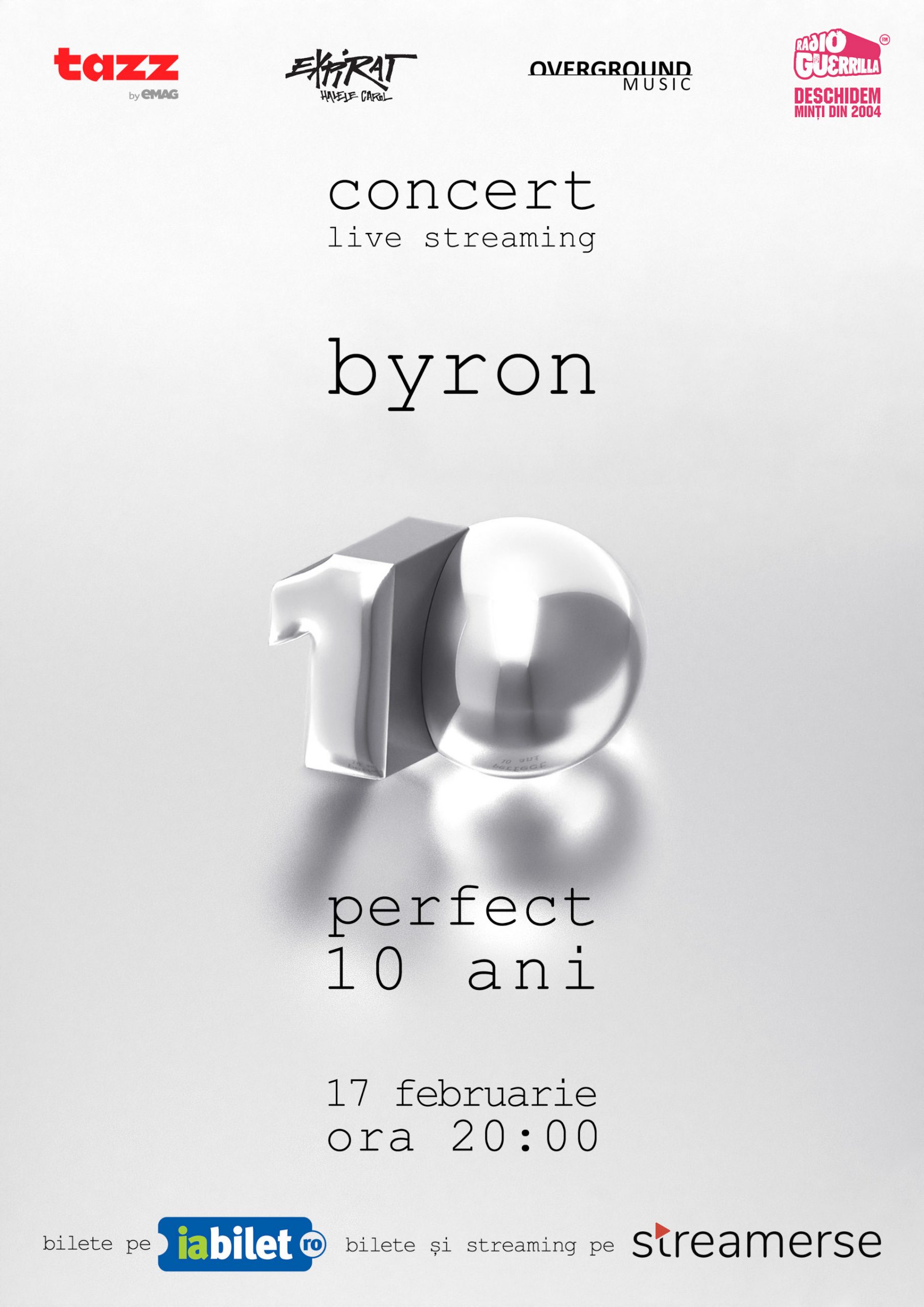 Trupa byron va susține un concert online pe platforma streamerse.net, miercuri, 17 februarie, începând cu ora 20.00, pentru a marca aniversarea a zece ani de la lansarea albumului Perfect. Evenimentul va fi transmis în direct de pe scena clubului Expirat din București.