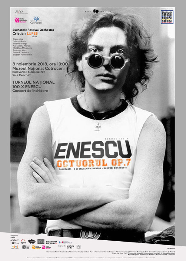 Turneul naţional „100 × Enescu“, iniţiat de dirijorul Cristian Lupeş şi susţinut de Bucharest Festival Orchestra, în toamna acestui an, se încheie, în luna noiembrie, cu o excepţională reprezentaţie organizată la Muzeul Naţional Cotroceni. Concertul de închidere va avea loc joi, 8 noiembrie, orele 19.00, în Salonul Cerchez al muzeului.