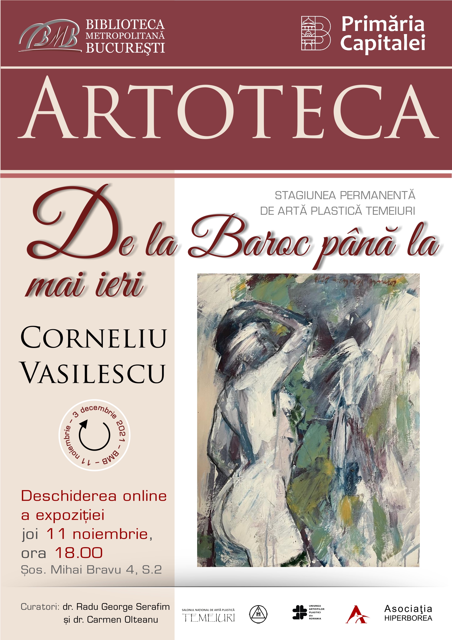 Biblioteca Metropolitană București (BMB) prin Direcţia Cultură, Învăţământ, Turism a Primăriei Municipiului Bucureşti anunţă deschiderea online a expoziției de pictură De la Baroc până la mai ieri a artistului Corneliu Vasilescu, la Artoteca BMB.