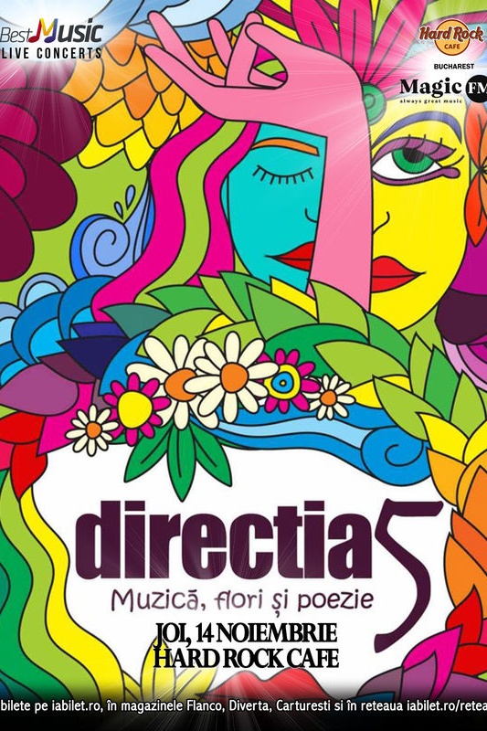 Cu mii de concerte la activ şi numeroase materiale discografice lansate, Direcţia 5 este o prezenţă consecventă şi foarte iubită pe scenele din România încă din ‘91. De la albumul de debut lansat în 1992, trecând prin perioada “Superstar” (1999), ce şi-a pus amprenta asupra tendinţelor muzicale ale vremii şi continuând cu mai recentele “Ambiental” (2006), “Emoţie” (2009) şi “Romantic” (2010), “Muzică, flori şi poezie” (2019), Direcţia 5 a spus şi continuă să spună, nenumărate poveşti de viaţă şi iubire, prin versurile sale şi prin interpretările live de excepţie.
