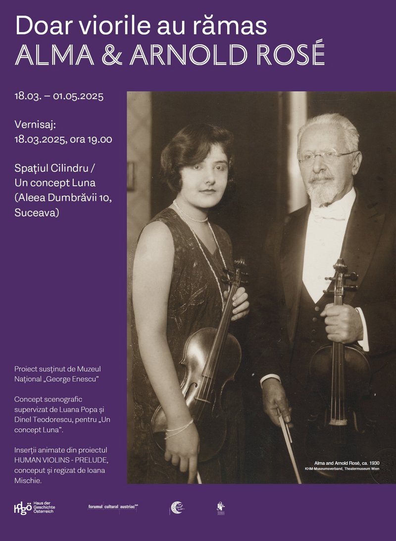 Atunci când muzica schimbă existențe. Destinul tragic a două personalități de referință ale scenelor muzicale și ale artelor spectacolului austriece și europene – Alma (1906-1944) și tatăl ei, Arnold Rosé (1863-1946) – este explorat în expoziția eveniment „Doar viorile au rămas – Alma și Arnold Rosé”, care va putea fi vizitată până la 1 mai, la Spațiul Cilindru din Suceava (Aleea Dumbrăvii 10). Evenimentul este organizat de Asociația „Un concept Luna” și Forumul Cultural Austriac.
