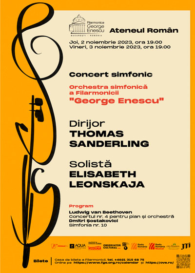 Filarmonica „George Enescu” invită publicul în serile de joi, 2 noiembrie şi vineri, 3 noiembrie 2023, la două concerte ce se anunţă formidabile graţie personalităţilor artiştilor invitaţi. La pupitrul Orchestrei Simfonice a Filarmonicii „George Enescu” se va afla Thomas Sanderling, dirijor germano-rus ce provine dintr-o adevărată dinastie de mari dirijori, fiind fiul cel mare al lui Kurt Sanderling şi fratele lui Michael şi Stefan. Fin cunoscător al muzicii lui Şostakovici (cu care a şi avut o strânsă colaborare), Thomas Sanderling s-a afirmat printr-un vast repertoriu, atât simfonic, cât şi de operă, precum şi prin interpretări ce amintesc de stilul marilor şefi de orchestră ai secolului trecut.