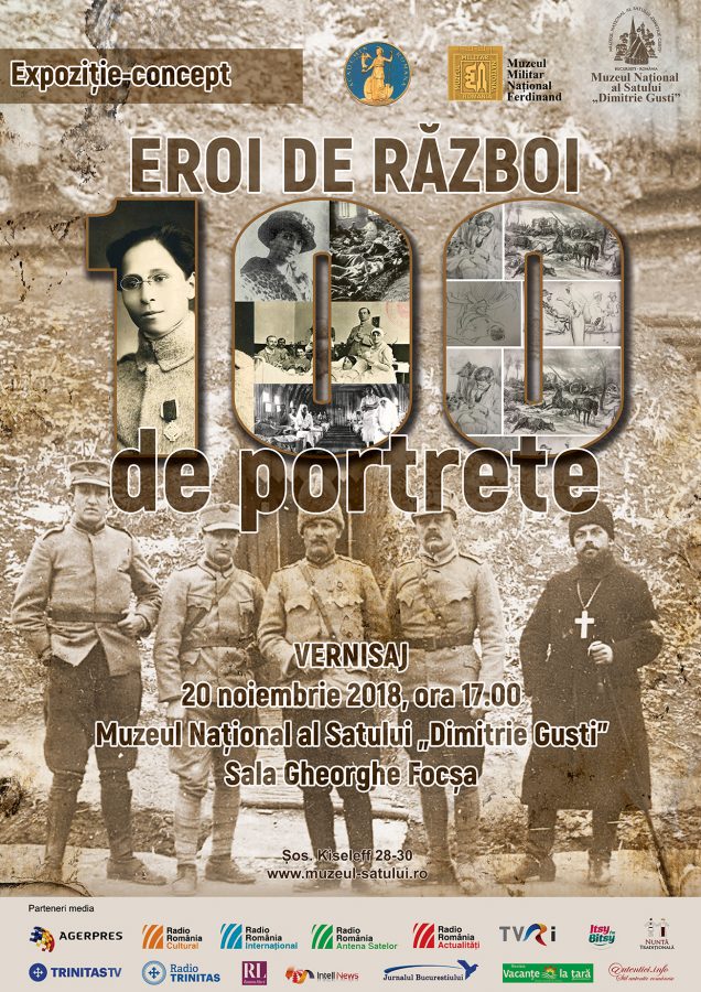 În perioada 20 noiembrie 2018 – 30 ianuarie 2019, Muzeul Naţional al Satului „Dimitrie Gusti” prezintă expoziţia-concept „Eroi de Război – 100 de portrete”. Prin acest proiect, instituţia de cultură fondată imediat după Marele Război de Dimitrie Gusti, întemeietorului Şcolii Sociologice de la Bucureşti, îşi propune, ca o continuare a cercetării în teren a echipelor lui, să prezinte, în special tinerei generaţii, dar nu numai ei, 100 de personaje care au crezut în idealul naţional, au luptat pentru el, s-au sacrificat şi cu sângele lor au trasat graniţele României Mari.