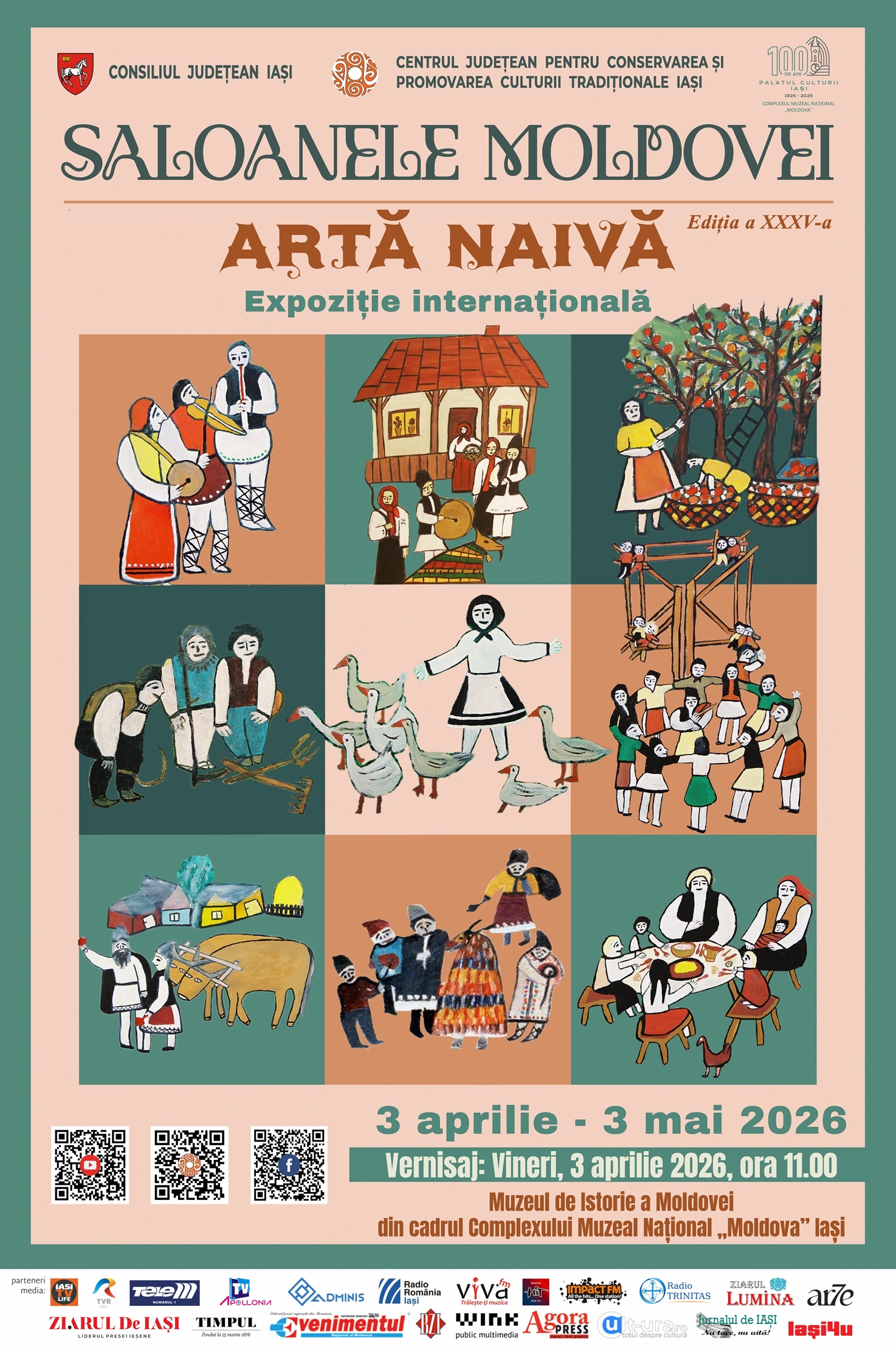 Complexul Muzeal Național „Moldova” – Muzeul de Istorie a Moldovei și Centrul Judeţean Pentru Conservarea şi Promovarea Culturii Tradiţionale Iaşi organizează la Palatul Culturii, în perioada 3 aprilie – 3 mai 2026, cea de a XXXV-a ediție a Expoziției Internaționale de Artă Naivă „Saloanele Moldovei”.