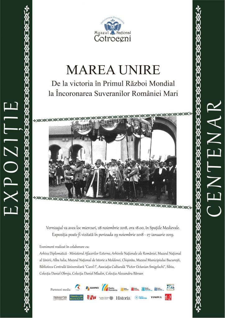 Muzeul Naţional Cotroceni organizează miercuri, 28 noiembrie 2018, la ora 18.00, în Spaţiile medievale, vernisajul expoziţiei „Marea Unire. De la victoria în Primul Război Mondial la Încoronarea Suveranilor României Mari”, proiect ce a deschis Anul Centenarului la MNC şi care acum este prezentat într-o formă nouă, îmbogăţită.