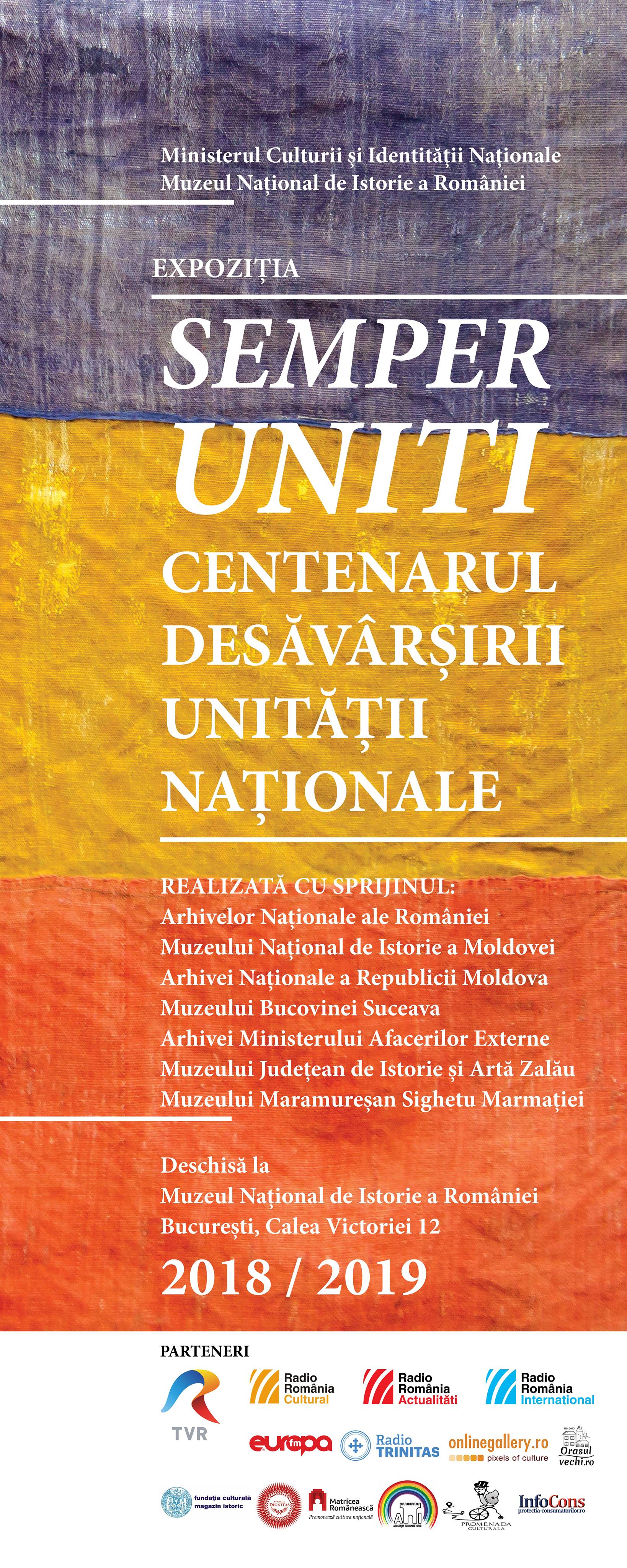 Muzeul Naţional de Istorie a României (MNIR) are onoarea să organizeze expoziţia – eveniment „Semper Uniti. Centenarul Desăvârşirii Unităţii Naţionale”, dedicată celebrării unui secol de la înfăptuirea Marii Uniri din 1918.
