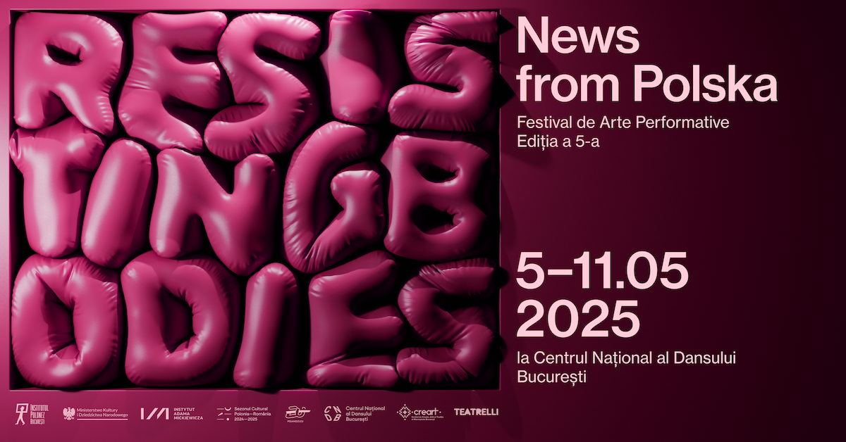 În perioada 5-11 mai, Centrul Național al Dansului București (CNDB) găzduiește cea de-a cincea ediție a Festivalului de arte performative News from Polska, organizat de Institutul Polonez din București și realizat în cadrul Președinției Poloniei la Consiliul Uniunii Europene 2025 și în cadrul Sezonului Cultural Polonia-România 2024-2025. Sub titlul Resisting Bodies, festivalul propune un concept curatorial dedicat corpului uman ca spațiu al rezistenței, transformării și împuternicirii într-o lume cuprinsă de crize pe toate palierele. Această ediție propune publicului din București patru spectacole din Polonia, care provoacă întrebări, îmbie spre moduri de gândire nefamiliare, imaginând și definind multiple forme ale potențialului protestatar al corpului în mișcare. Toate spectacolele sunt subtitrate în română iar biletele vor fi disponibile în curând pe platforma bilet.ro.