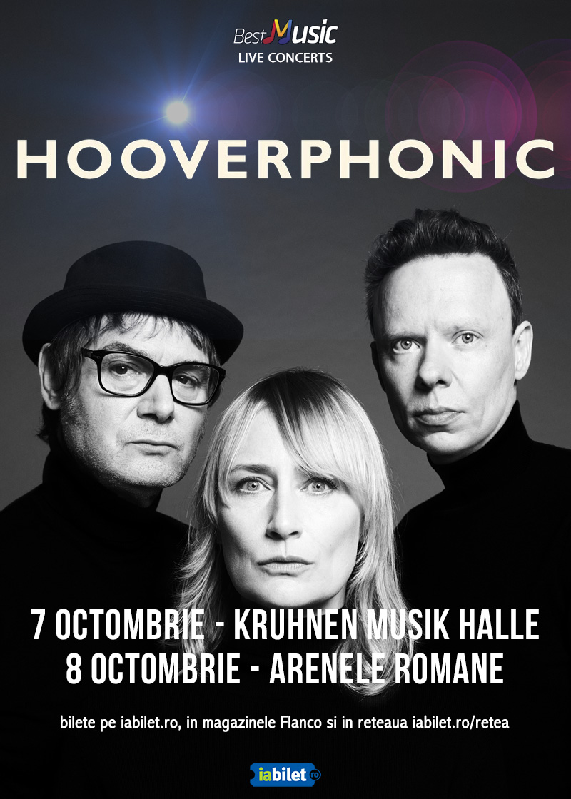 Hooverphonic cântă pe 7 octombrie la Kruhnen Musik Halle din Braşov şi pe 8 octombrie la Arenele Romane din Bucureşti (open air).
