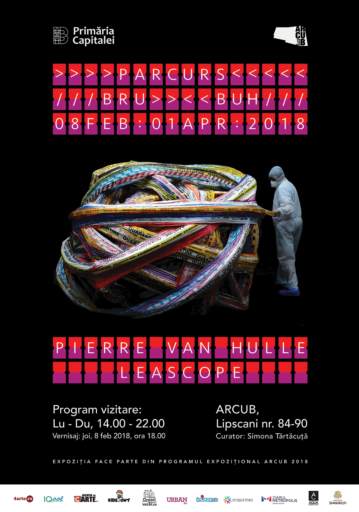 Programul Expoziţional ARCUB 2018 se deschide joi, 8 februarie, ora 18:00, cu vernisajul expoziţiei PARCURS BRU – BUH, semnată de artiştii conceptuali belgieni Pierre Van Hulle şi Léa Scope. Expoziţia organizată de Primăria Capitalei prin ARCUB, este curatoriată de Simona Tărtăcuţă şi poate fi vizitată zilnic la sediul ARCUB din strada Lipscani 84 – 90, în perioada 8 februarie – 1 aprilie.