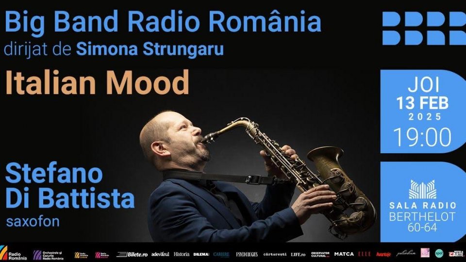Ce poate fi mai potrivit pentru o seară de final de iarnă, decât ritmuri de jazz și o atmosferă cu parfum italian? Joi, 13 februarie 2025 (de la 19.00), vă invităm la Sala Radio la „Italian Mood”, concert prezentat de Big Band-ul Radio dirijat de Simona Strungaru. Invitat special al serii este saxofonistul italian Stefano Di Battista, artist de talie mondială, ce se va afla pentru prima oară alături de Big Band-ul Radio România. Seara de la Sala Radio vă propune un repertoriu variat, de la compoziții originale la standarde de jazz și cântece italienești cunoscute, interpretate în maniera jazzistică.