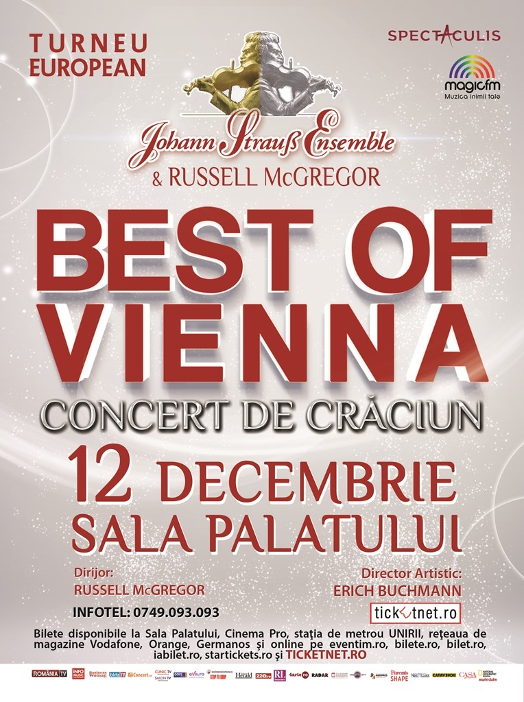 În luna decembrie, orchestra Johann Strauss Ensemble şi maestrul dirijor Russel McGregor revin în ţara noastră cu un program muzical antrenant, plin de vivacitate în cadrul unui nou turneu naţional, intitulat ”Best of Vienna”, ce va cuprinde 7 oraşe.