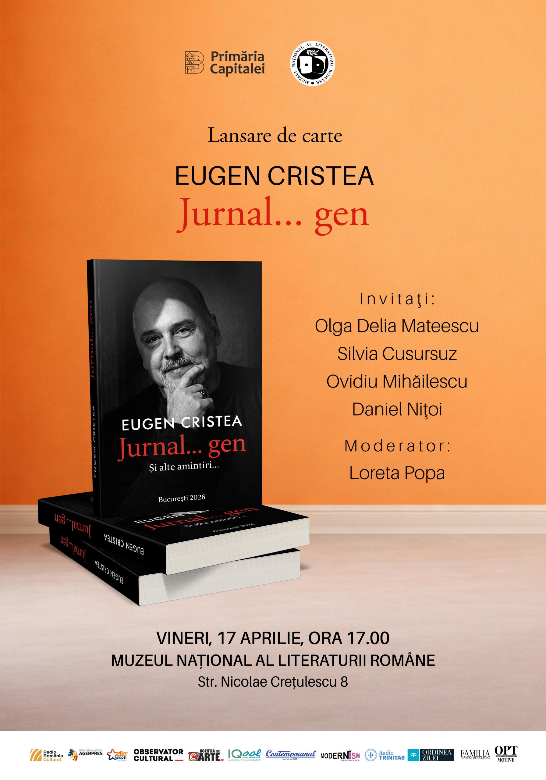 Muzeul Național al Literaturii Române vă invită vineri, 17 aprilie 2026, ora 17.00, la lansarea volumului „Jurnal… gen” semnat de actorul Eugen Cristea. Evenimentul va avea loc în Sala Perpessicius, Str. Nicolae Crețulescu nr. 8.