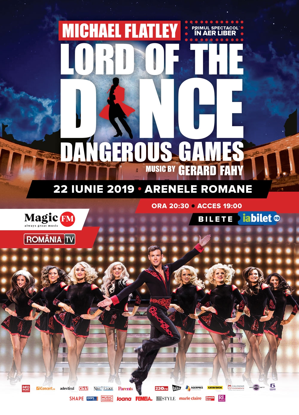 40 dintre cei mai remarcabili dansatori din lume vor urca, pentru prima dată, pe scena Arenelor Romane din capitală, în data de 22 iunie, de la ora 20:30 pentru o nouă demonstraţie de profesionalism şi talent, în cel mai vizionat spectacol din toate timpurile, Lord Of The Dance – Dangerous Games.