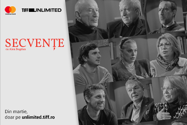 Și, totuși, cum au jucat scena aia? De la această curiozitate a pornit o serie nouă marca TIFF Unlimited (unlimited.tiff.ro), disponibilă gratuit, de oriunde din lume, începând din 4 martie: Secvențe. Câțiva dintre cei mai cunoscuți actori români sunt provocați de un alt actor, Alex Bogdan, să revadă și să comenteze scene memorabile din cariera lor, oferind detalii inedite din culisele filmelor respective.