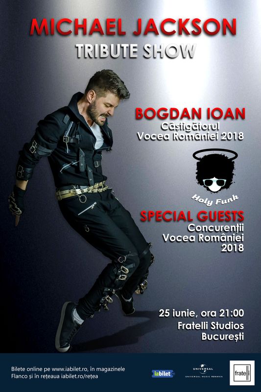 După ce a devenit „Vocea României” în echipa lui Smiley în 2018, aşa cum a promis tuturor celor care l-au votat şi l-au susţinut, Bogdan Ioan îşi urmează pasiunea pentru muzică şi pregăteşte un eveniment de anvergură: „Michael Jackson Tribute Show”, pe 25 iunie, la Fratelli Studios, de la ora 21:00.