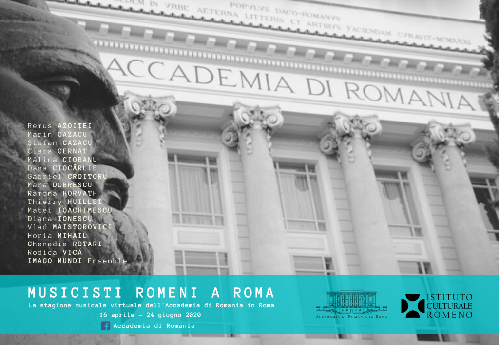 În perioada 16 aprilie – 24 iunie 2020, Accademia di Romania in Roma organizează, pe pagina de Facebook a instituţiei, proiectul„Muzicieni români la Roma. Stagiunea muzicală a Accademia di Romania in Roma”. În cadrul acestei ministagiuni muzicale virtuale, au acceptat invitaţia Accademia di Romania in Roma de a participa următorii muzicieni: violoniştiiRemus Azoiţei (România/Marea Britanie), Clara Cernat (România/Franţa), Mălina Ciobanu (România/Germania), Gabriel Croitoru (România), Vlad Maistorovici (România), pianiştii Dana Ciocârlie (România/Franţa), Mara Dobrescu (România/Franţa),Thierry Huillet (Franţa), Diana Ionescu (România), Horia Mihail (România), flautistul Matei Ioachimescu (România/Austria), violonceliştii Marin Cazacu (România) şi Ştefan Cazacu (România), soprana Rodica Vica (România/Austria), pianista de jazz Ramona Horvath (România/Franţa), acordeonistul Ghenadie Rotari (Republica Moldova/Italia) şi Ansamblul Imago Mundi (România).