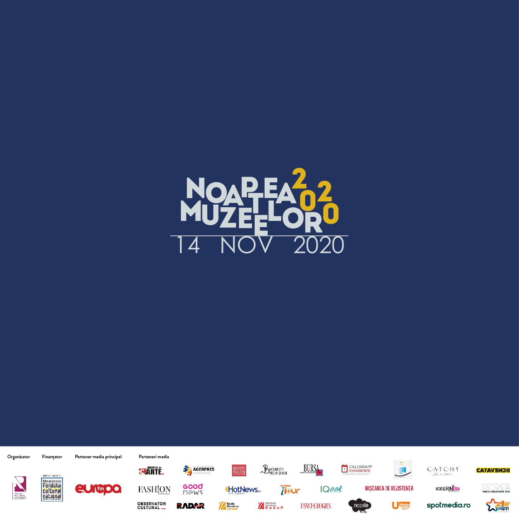 Pe 14 noiembrie 2020, Noaptea Muzeelor propune publicului la nivel național activări muzeale, instalații de artă, producții video dedicate sau proiecte culturale organizate atât în muzee sau spații alternative, cât și în mediul virtual. În contextul pandemiei, evenimentele și expozițiile din muzee sau spații culturale se vor desfășura cu respectarea normelor și recomandărilor oficiale aflate în vigoare în fiecare localitate.