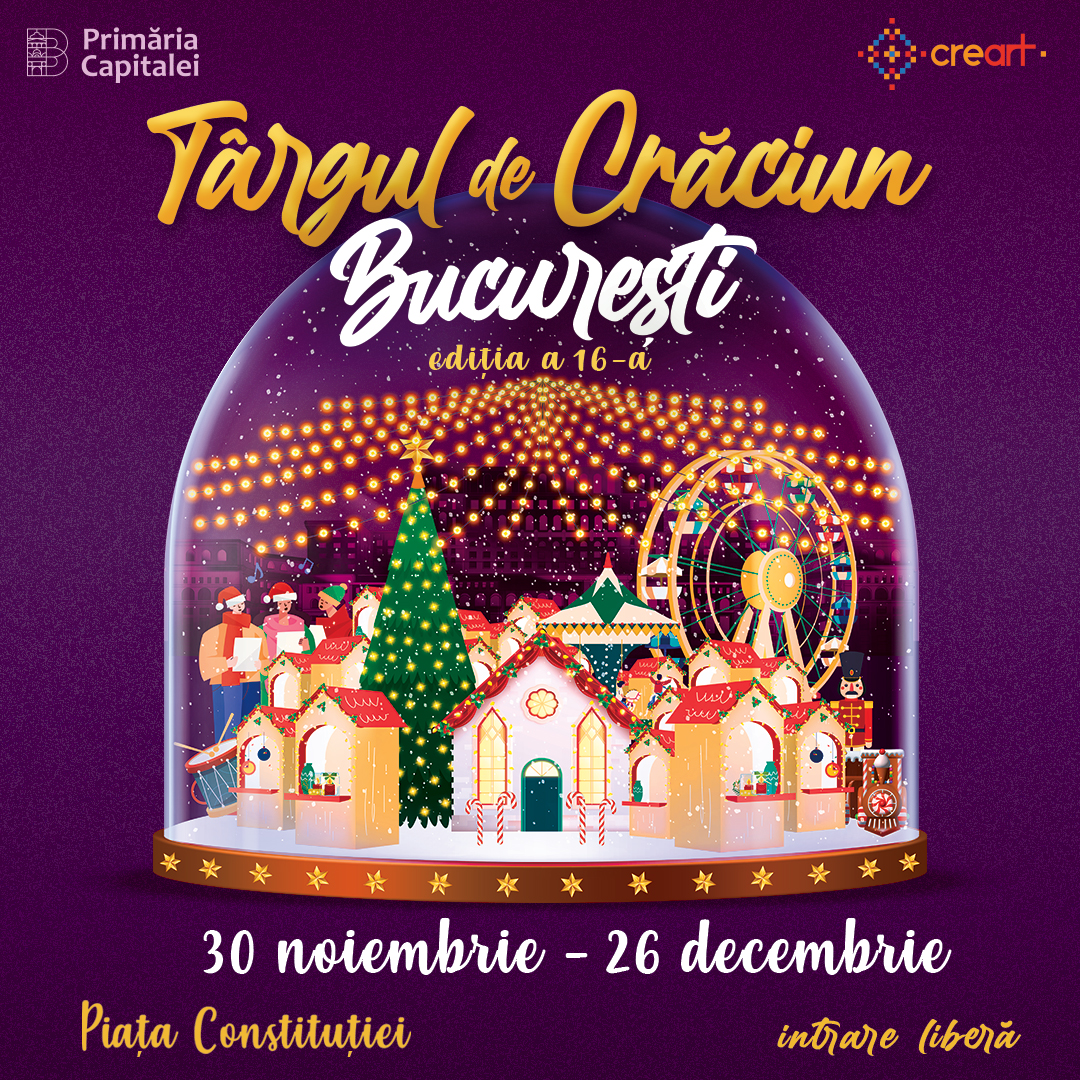 Cel mai mare târg din România dedicat sărbătorilor de iarnă, cu o tradiție de peste 15 ani, Târgul de Crăciun București, înscris în rețeaua internațională www.christmasmarkets.com., se deschide joi, 30 noiembrie, intrarea fiind liberă. Organizat de Primăria Capitalei, prin CREART – Centrul de Creație, Artă și Tradiție al Municipiului București, în Piața Constituției, evenimentul așteaptă bucureștenii și turiștii pentru experiența Crăciunului autentic, până pe 26 decembrie, cu activități și atracții dedicate întregii familii.