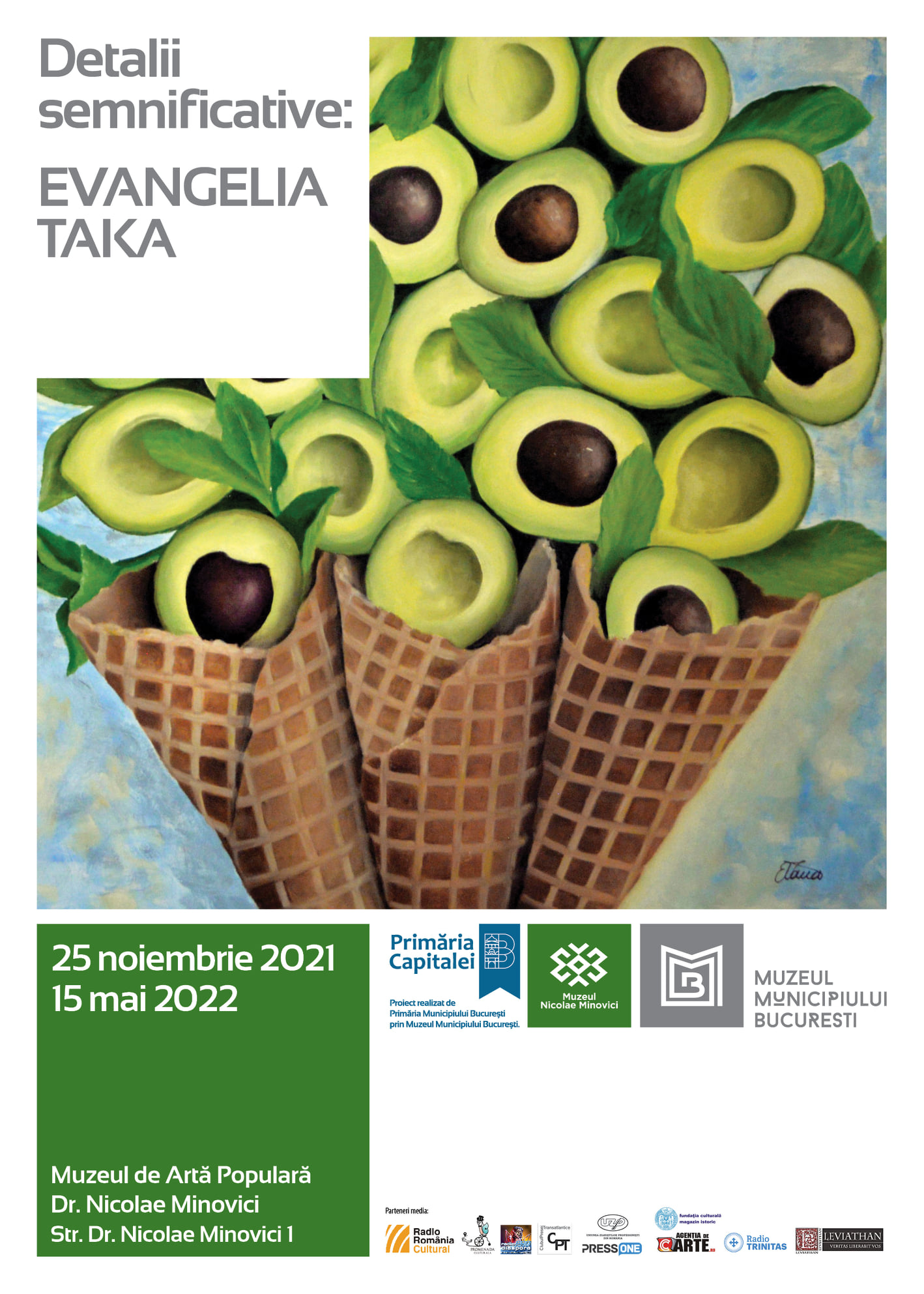 Muzeul Municipiului București invită iubitorii de artă contemporană la expoziția „Detalii semnificative: Evangelia Taka”, care va putea fi vizitată la Muzeul Nicolae Minovici în perioada 25 noiembrie 2021 – 15 mai 2022.