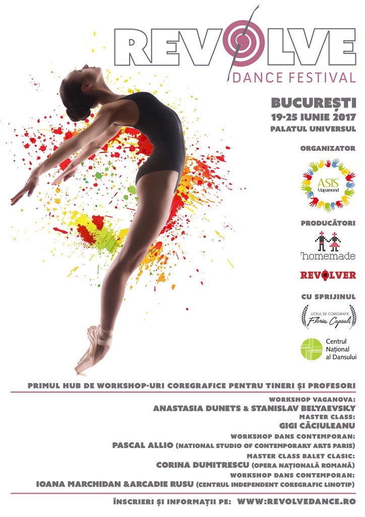 Revolve Dance Festival, primul eveniment din România ce lansează oportunitatea de a crea un hub internaţional de workshop-uri coregrafice, adresat atât tinerilor dansatori profesionişti cât şi profesorilor din domeniul baletului şi dansului contemporan, se va desfăşura în perioada 18 – 25 iunie 2017, în capitală, sub îndrumarea a doi dintre cei mai renumiţi profesori internaţionali de balet profesionist din Rusia, precum, şi a numeroşi invitaţi speciali, profesori, coregrafi şi dansatori de notorietate din România şi Franţa.