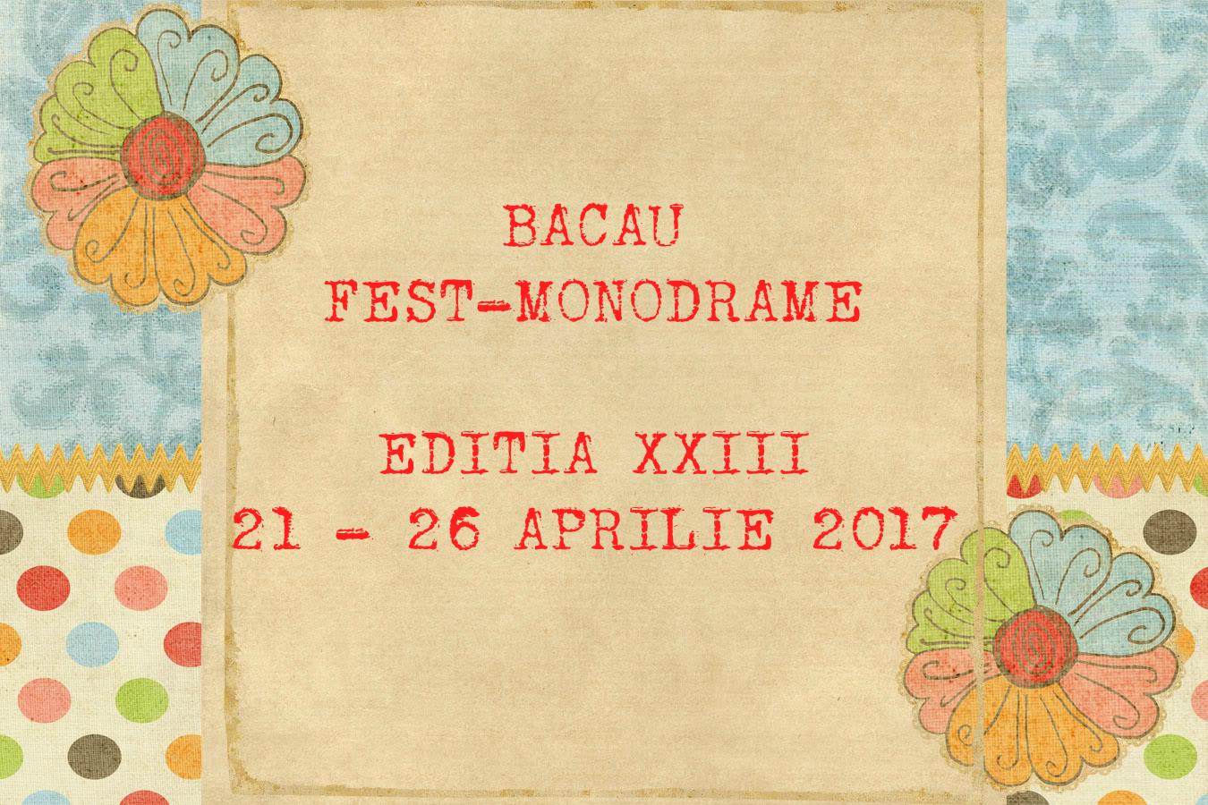 Teatrul Municipal Bacovia organizează în perioada 21-26 aprilie 2017, Bacău Fest – Monodrame, succesorul Festivalului Internaţional al Recitalurilor Dramatice şi al Galei Star.