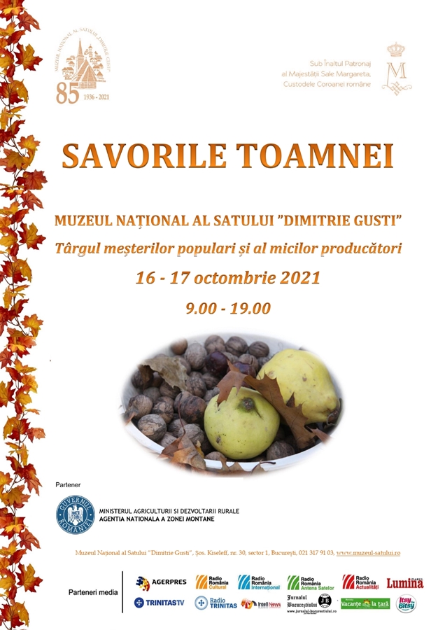 Muzeul Național al Satului “Dimitrie Gusti” vă invită în perioada 16-17 octombrie la “Savorile toamnei”, târgul care sărbătorește recoltele acestui an și este dedicat Zilei naționale a produselor agroalimentare românești.