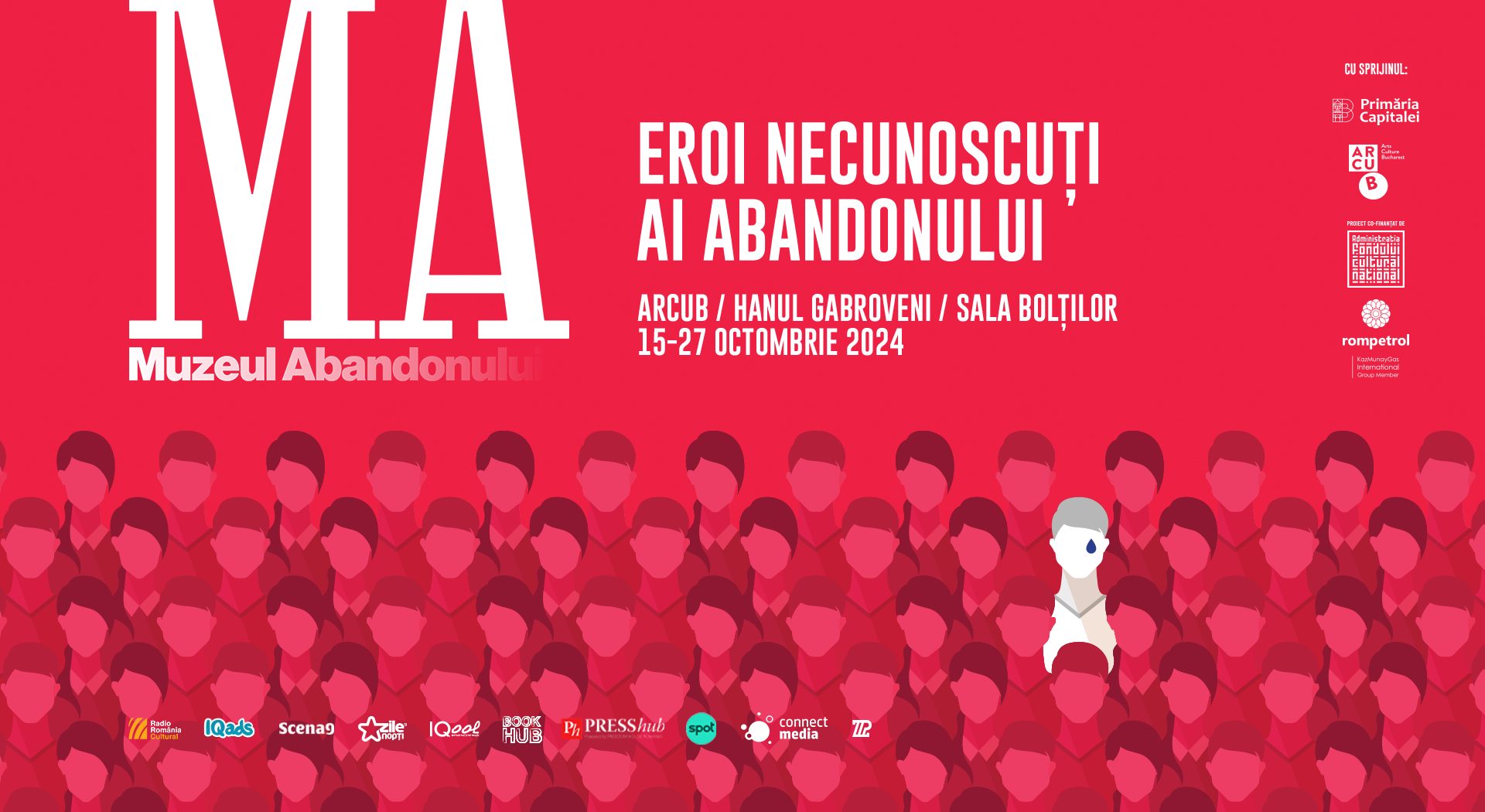 În perioada 15 – 27 octombrie va avea loc, la ARCUB – Hanul Gabroveni, expoziția „Eroi Necunoscuți ai Abandonului”. Proiectul sondează istoriile unor oameni obișnuiți, care în contextul neobișnuit și dramatic al orfelinatelor României din anii 90’ au ales calea cea lungă și istovitoare a eroismului. Expoziția este o inițiativă marca Muzeul Abandonului și va putea fi vizitată, cu acces gratuit, de marți până duminică, între orele 12:00 – 20:00, la ARCUB – Hanul Gabroveni, Sala Bolților.