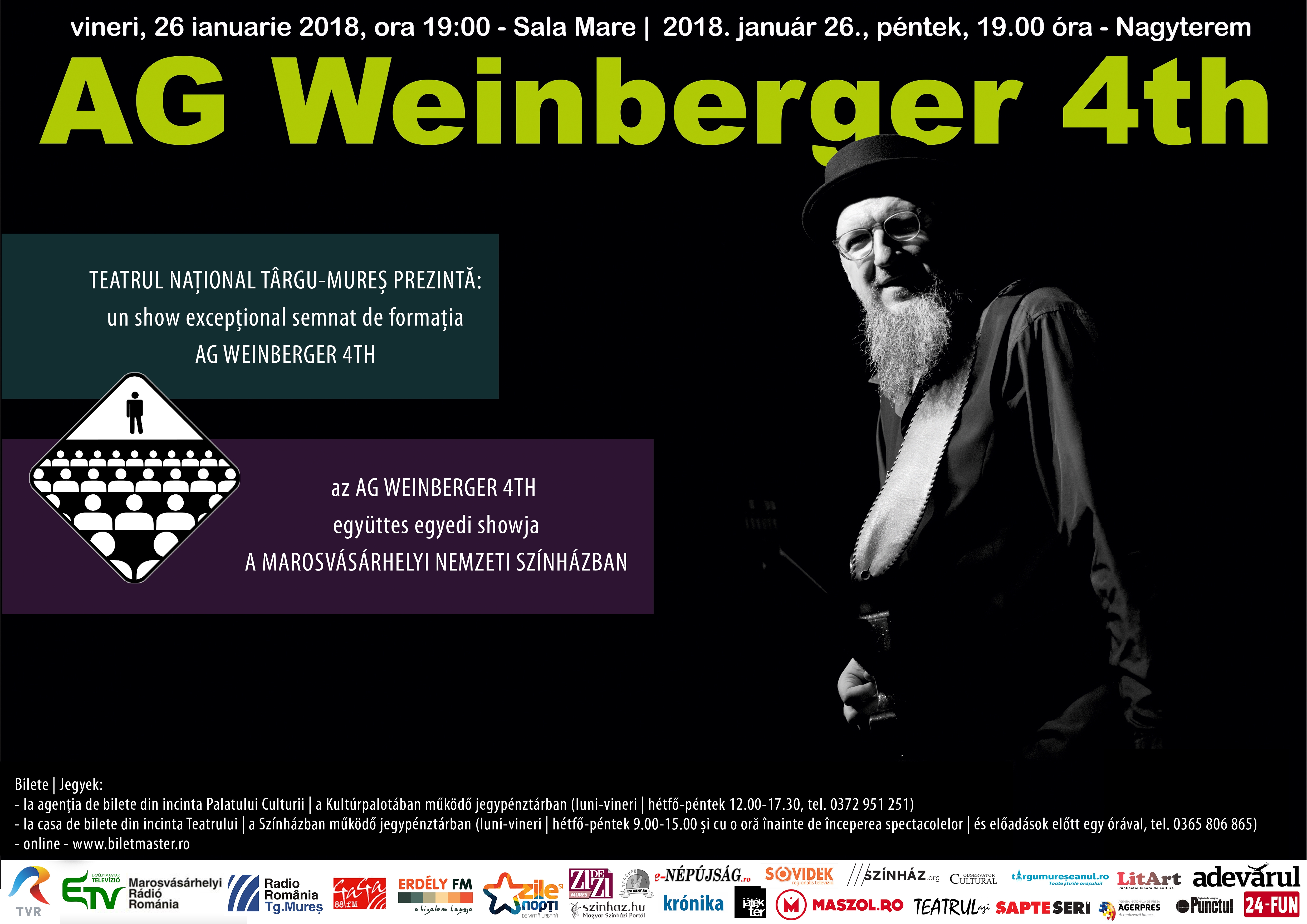 Teatrul Naţional Târgu-Mureş prezintă un show excepţional semnat de formaţia AG Weinberger 4th, care va avea loc vineri 26 ianuarie 2018, de la ora 19:00, la Sala Mare.
