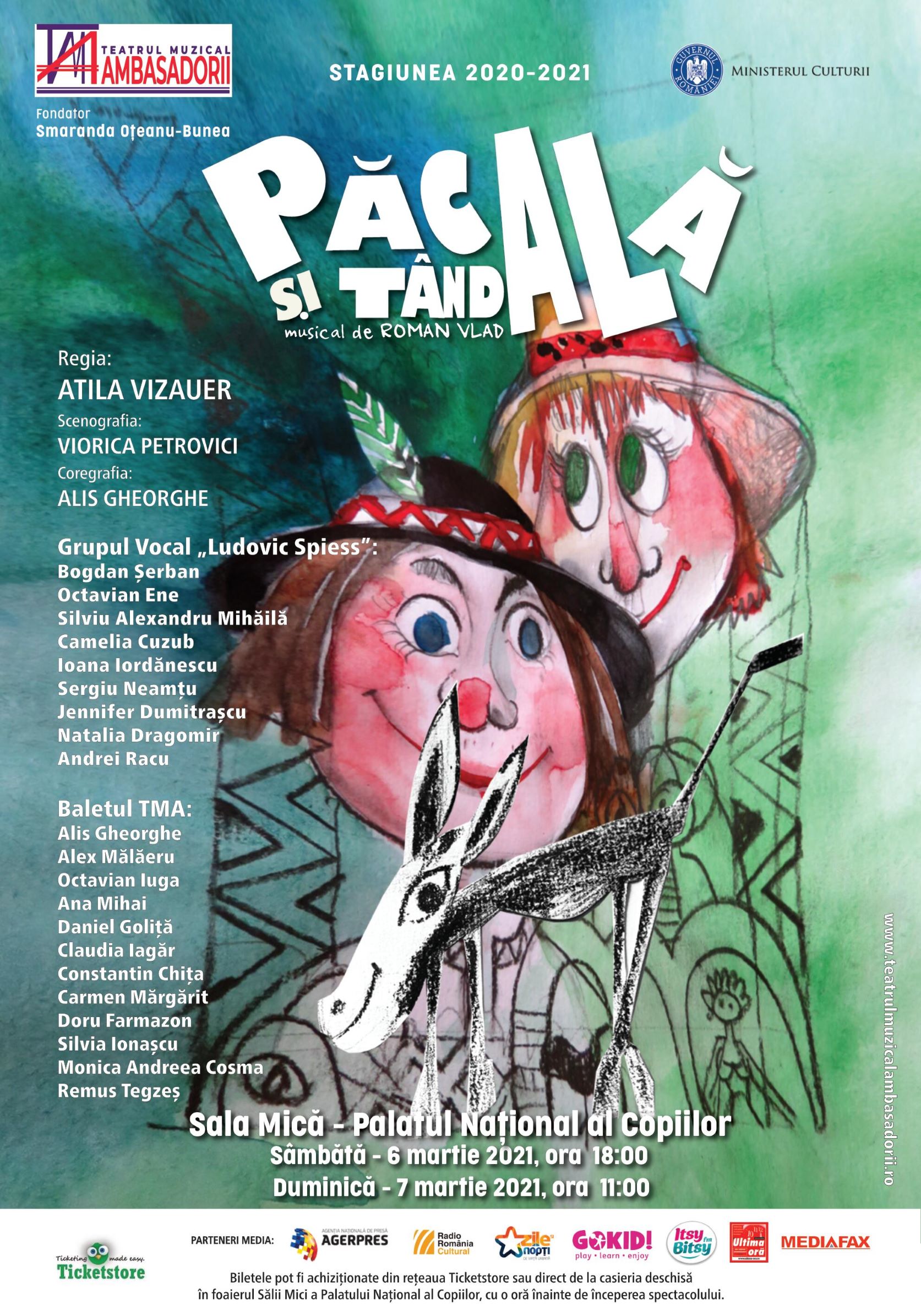 A doua producție susținută de Teatrul Muzical Ambasadorii cu publicul în sală se va juca la începutul lunii martie și este „Păcală și Tândală”, un musical de Roman Vlad.