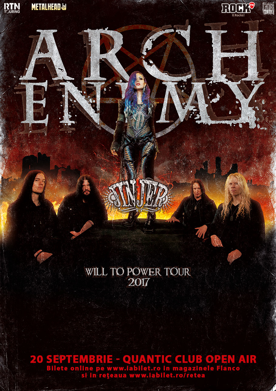 Arch Enemy şi Jinjer vor concerta la Club Quantic pe scena Open Air pe 20 septembrie! Concertul face parte din turneul “Will To Power” care ajunge şi la Bucureşti.