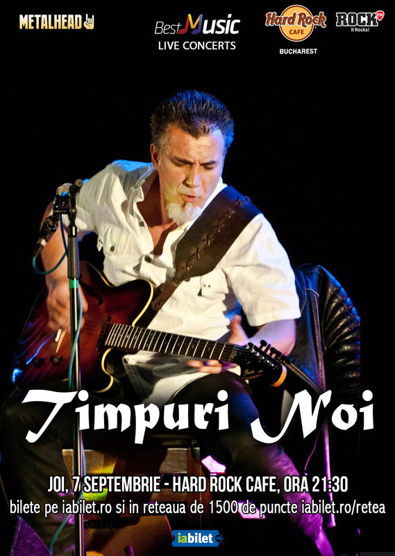 BestMusic Live Concerts şi METALHEAD te invită la Hard Rock Cafe, joi 7 septembrie, de la ora 21:30, să petreci o seară PERFECTA cu una dintre cele mai longevive trupe de rock româneşti: Timpuri Noi! Invitaţi speciali: Luca, Stere, Adeline, Victoria, Vecina, Verginica, Rambo, Catran şi Varu’ Maftei!