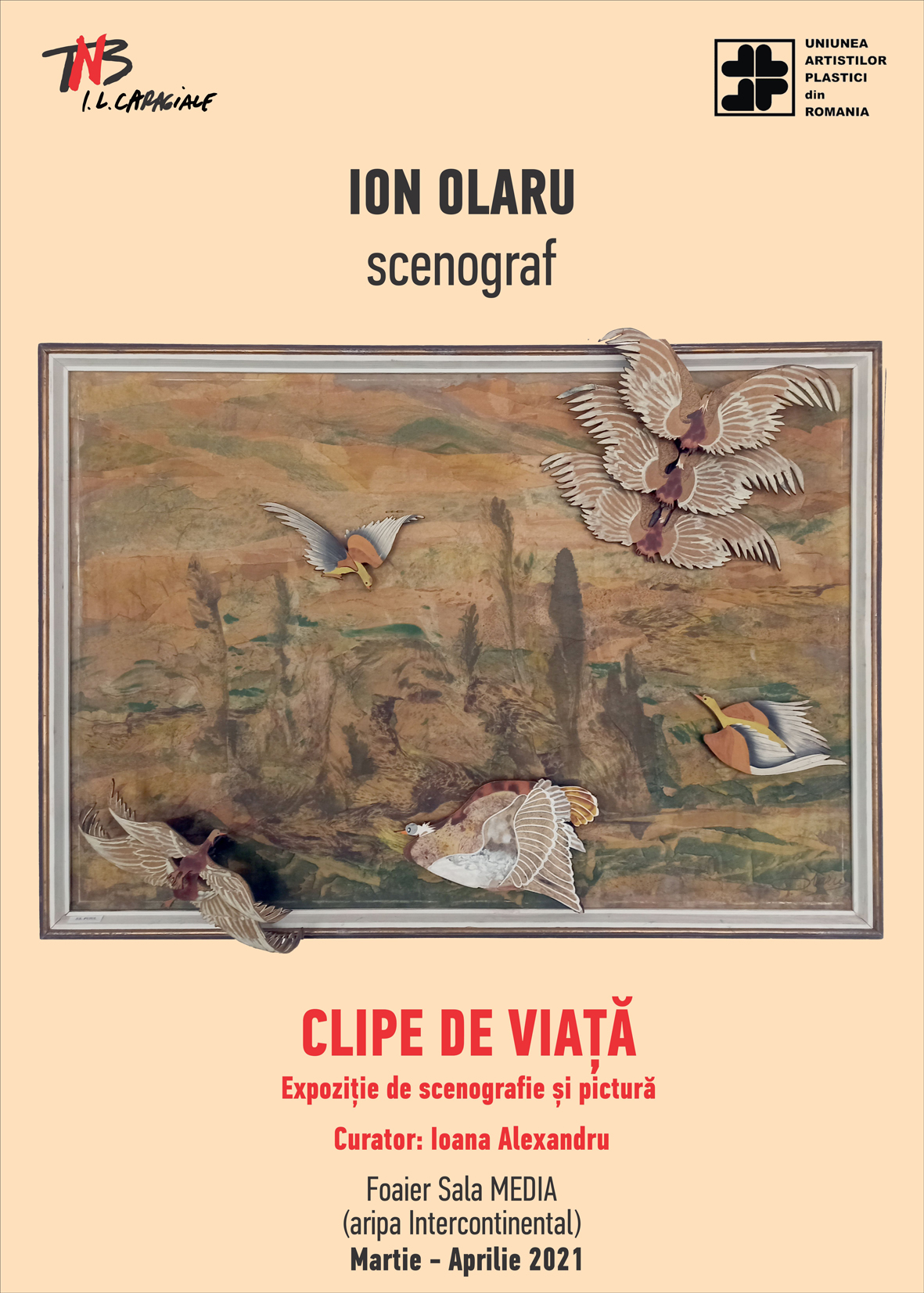 Începând cu data de 1 Martie 2021, spațiul expozițional din Foaierul Media al TNB (aripa dinspre Intercontinental) se va anima din nou, găzduind o amplă expoziție cu lucrările artistului Ion Olaru, scenograful-pictor, autorul a zeci de scenografii de televiziune, de teatru, dar și de scenografie pentru filme de animație, totodată pictor, făuritor de icoane sau de surprinzătoare „micro-monumente ale armoniei universale” (cf. Corneliu Antim, critic de artă), elaborate dintr-un material inedit… tărtăcuța!